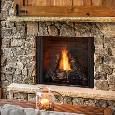 It's easy to incorporate the timeless elegance and satisfying warmth of fire into your home with the vent free firebox series from Majestic. Choose from trendy gray, classic brown or a modern reflective black glass for your interior. Finish it clean to the firebox and add a beautiful Monessen log set. |