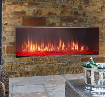 Light up your landscape. The Lanai linear gas fireplace offers contemporary style. Feel confident enjoying the flames with proven technologies. The night comes alive with glowing flames and a colorful firebed. Multicolored LED lights shine through the crushed glass firebed and can even be used when the fireplace is off, Stainless steel interior reflects and magnifies flames, Rust-resistant stainless steel construction, IntelliFire™ Ignition System with wall switch constantly monitors ignition and ensures safe functioning, Glass wind guard keeps the flames full and lively, 51" wide fireplace adds enjoyment to your space |
